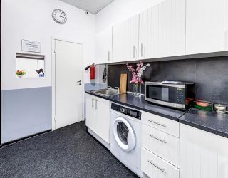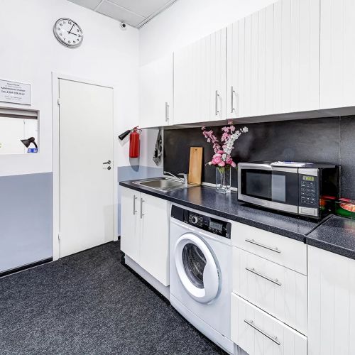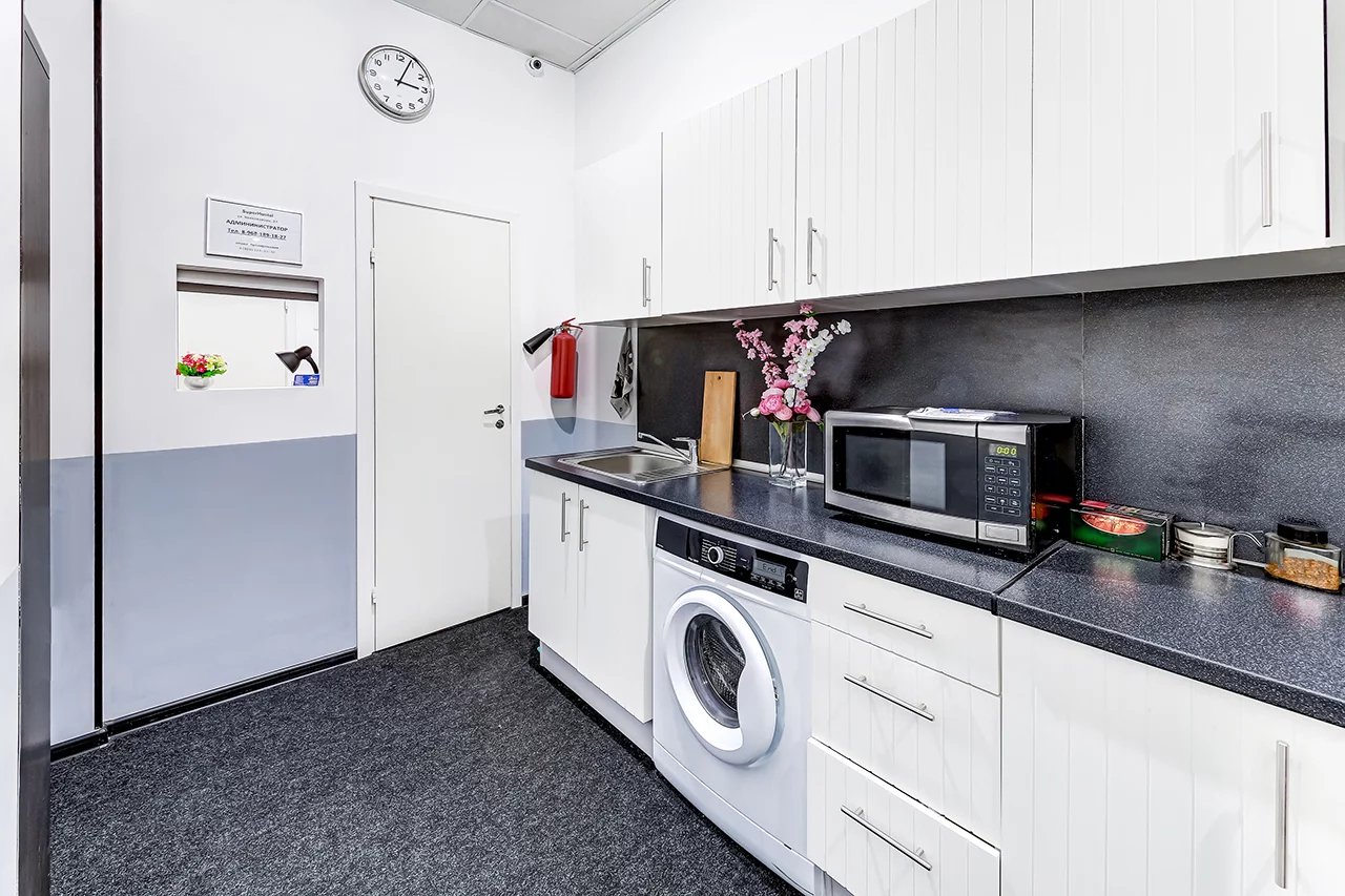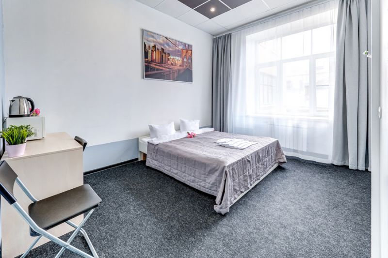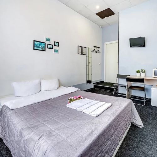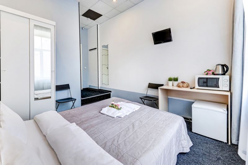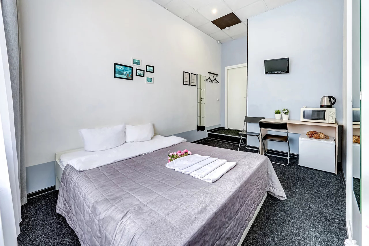 Жилой фонд включает 8 уютных номеров, оформленных в светлых цветах. Каждый укомплектован двуспальной кроватью, вместительным шкафом, обеденным уголком с микроволновой печью, совмещенным санузлом с душевой кабиной. Везде доступно подключение к Wi-Fi. На этаже можно воспользоваться стиральной машиной и гладильными принадлежностями.